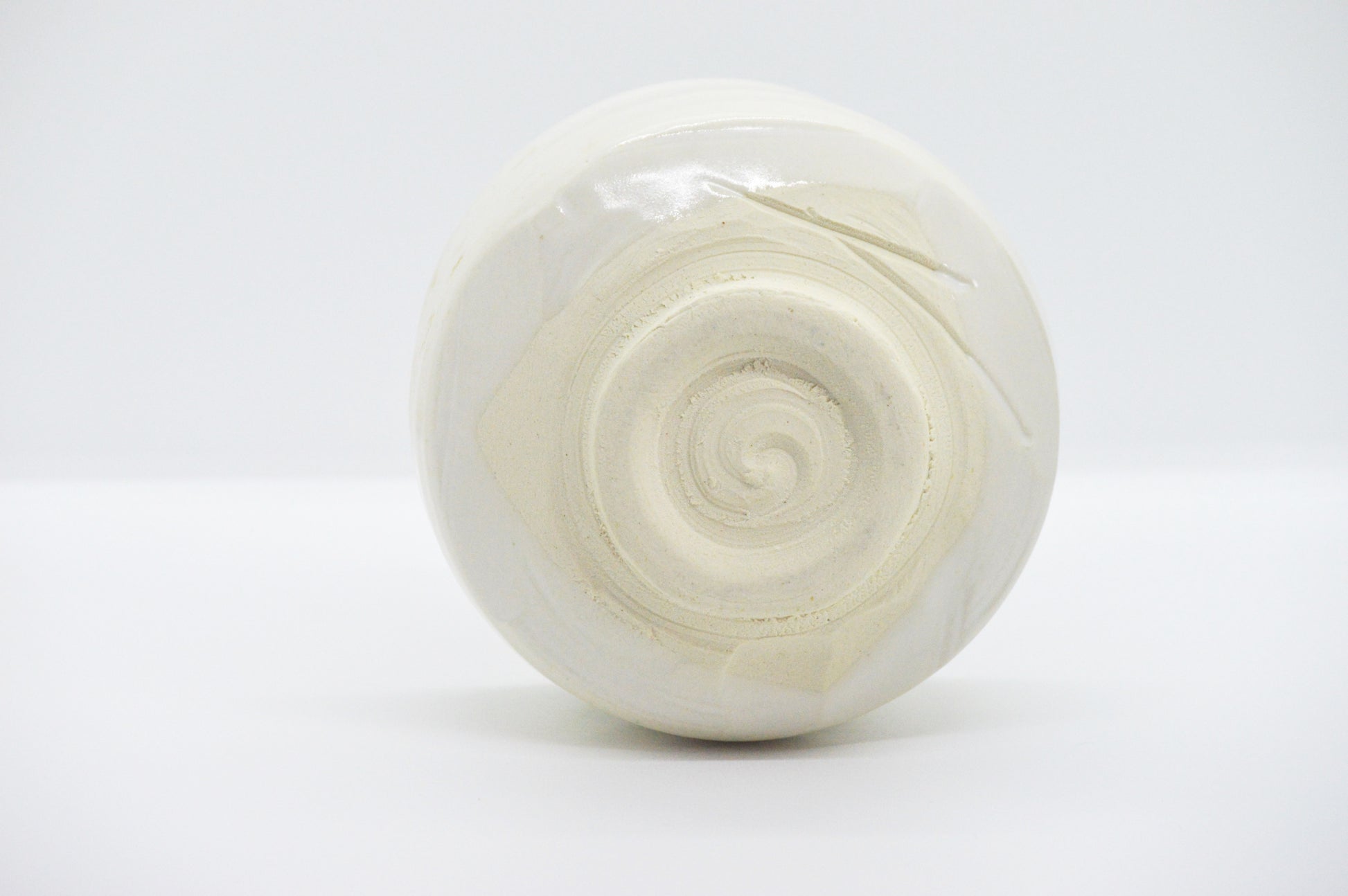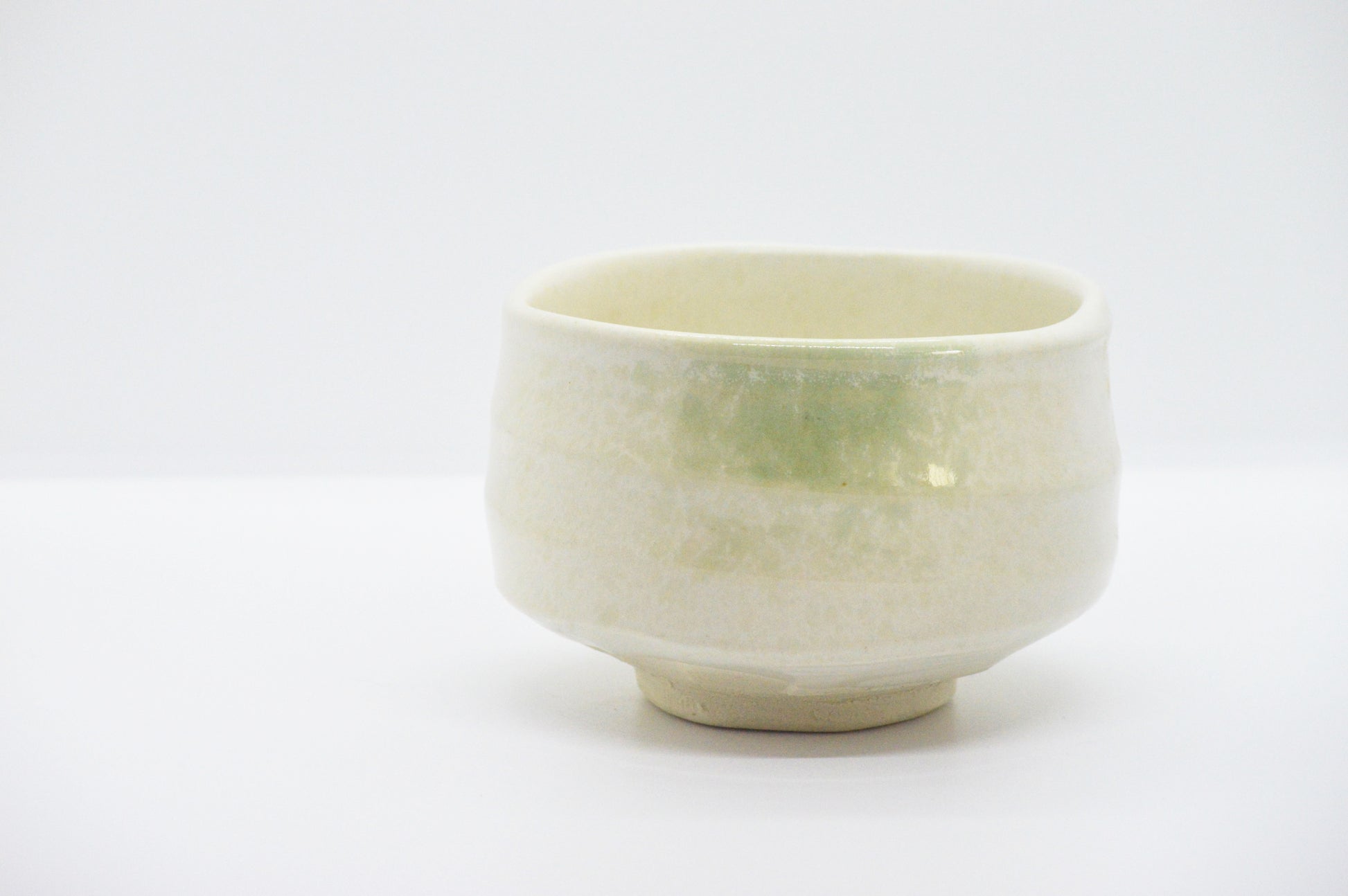 Un chawan de cerámica Mino hecho a mano, con una base crema suave sobre la que reposan sutiles matices verdosos, como musgo acariciado por la luz. Es un homenaje al viaje del té, a la vida que fluye, a la armonía entre la naturaleza y el espíritu humano. Cada detalle susurra respeto, contemplación y gratitud por lo simple.