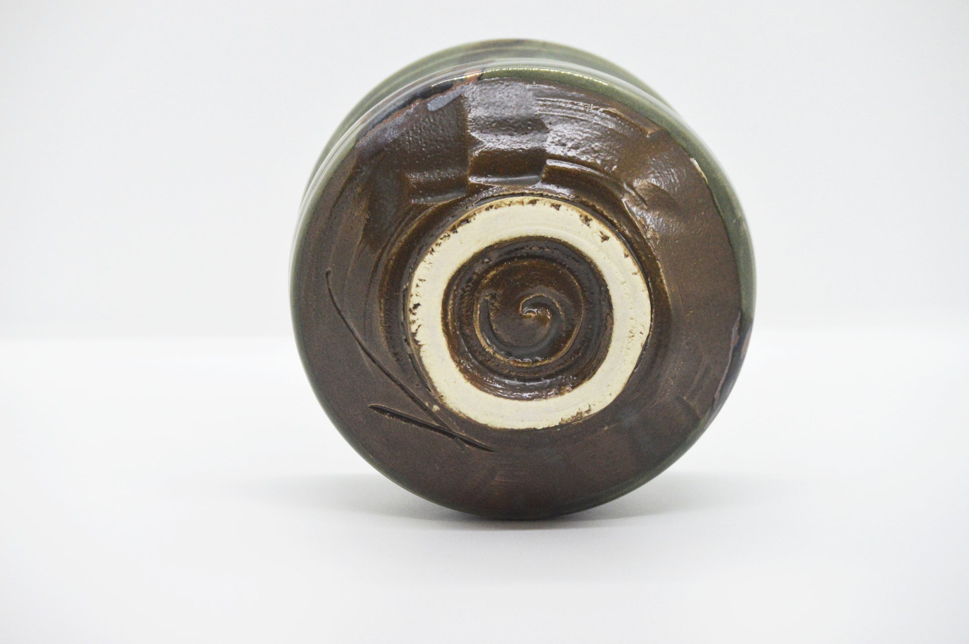 Pieza única de colección elaborada en cerámica Mino, con un acabado brillante que realza su riqueza visual. La yuxtaposición de tonos verdes en su superficie crea un efecto majestuoso y profundo, que nos conecta con la esencia misma de la planta del té. El interior verde oscuro parece abrazar el matcha, enalteciendo su color y simbolismo. Una obra que eleva la ceremonia a una experiencia contemplativa y sensorial.