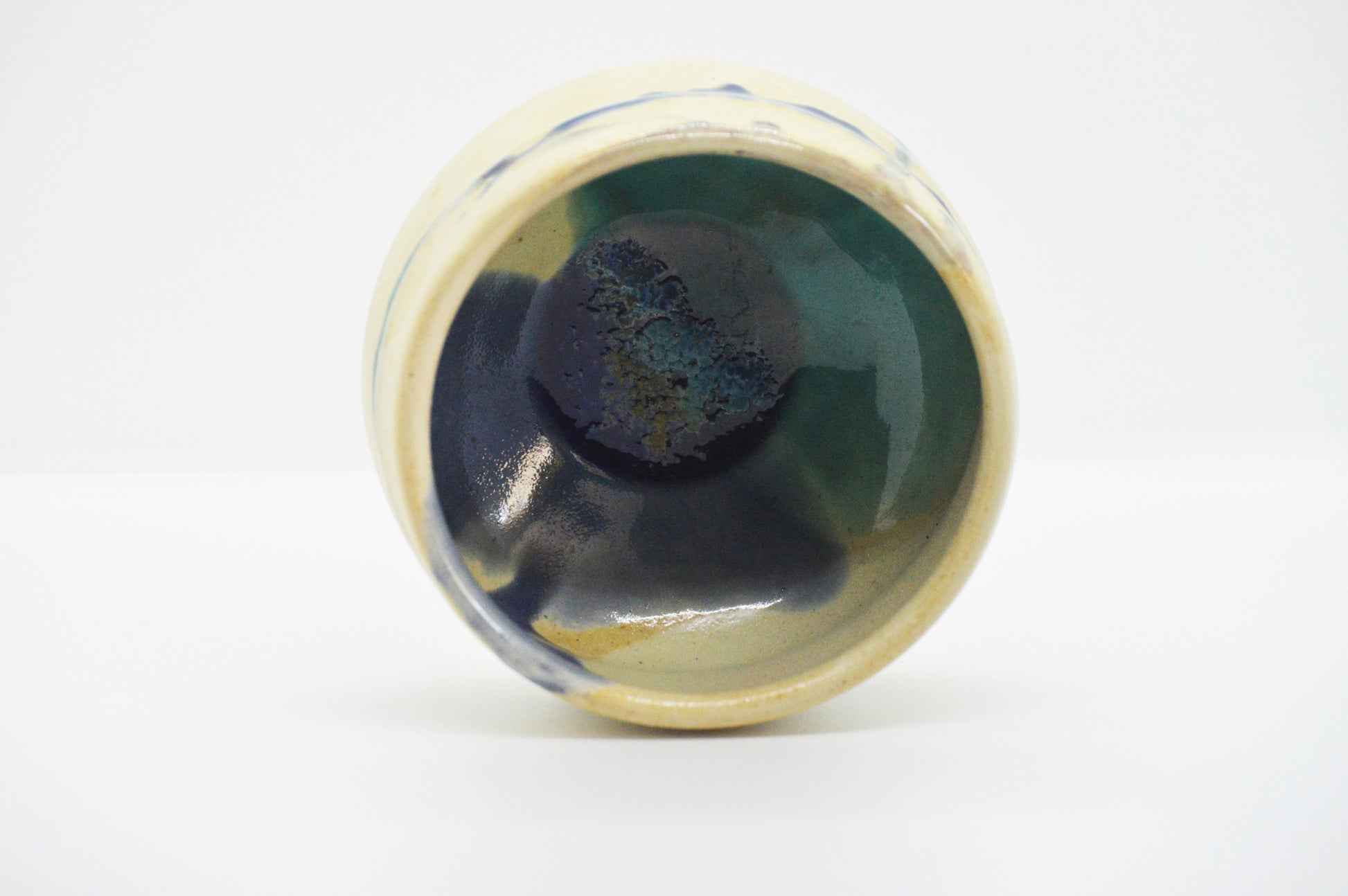 - Base de cerámica amarillenta con matices verdes ascendentes.